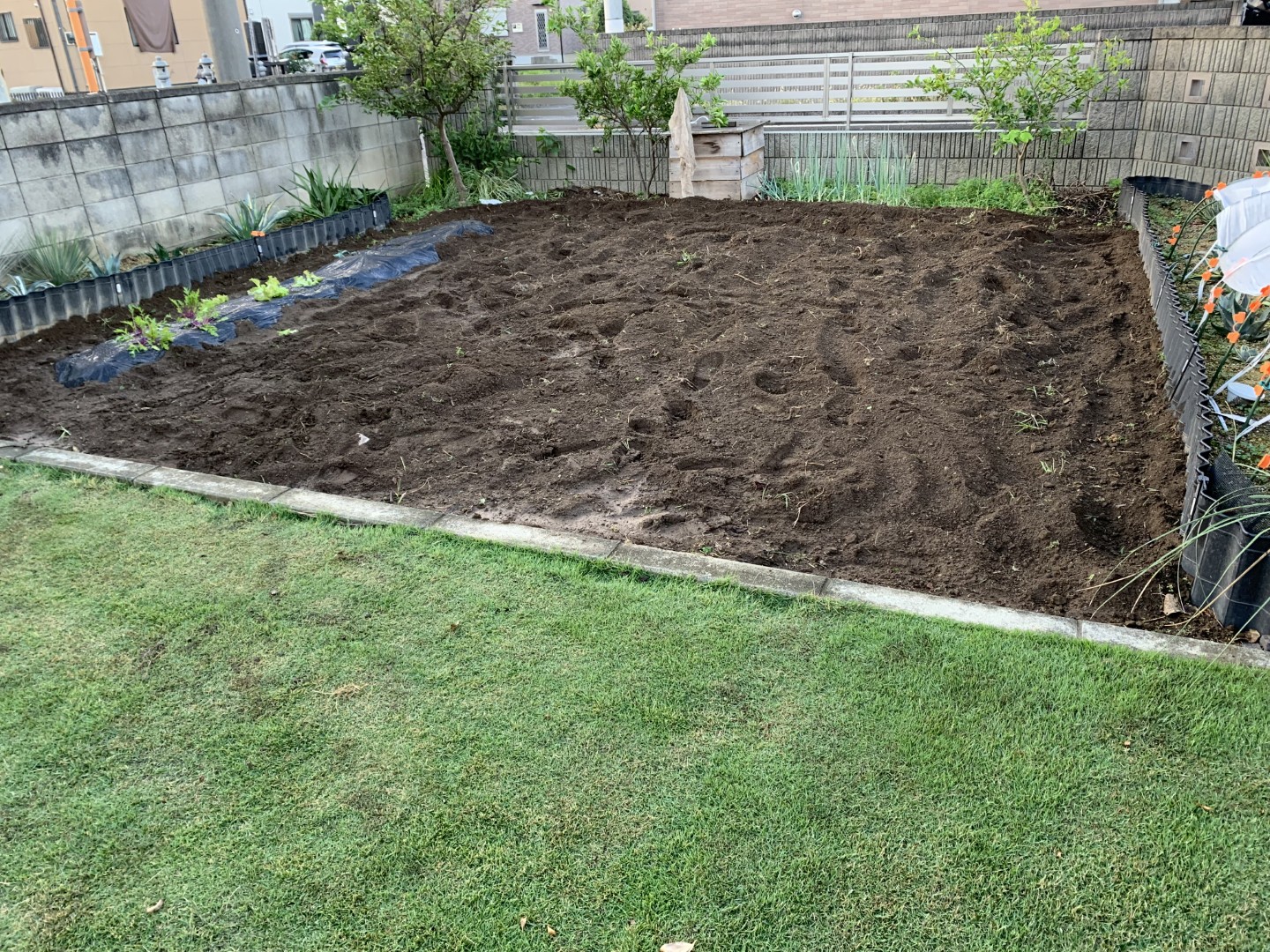 庭木やブドウの剪定枝や野菜の残渣、芝刈りのカスが有機物になるので、これが分解されて、団粒構造化が促進され、フカフカの土になるはず。