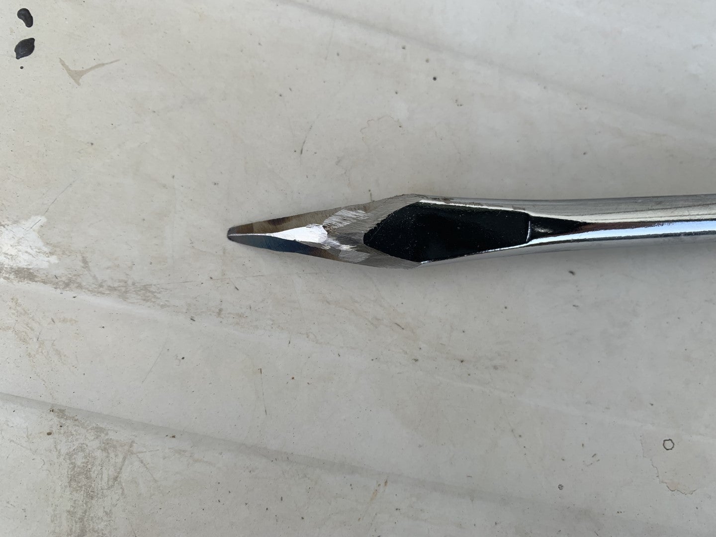 サンダーでなるべく尖らせます。