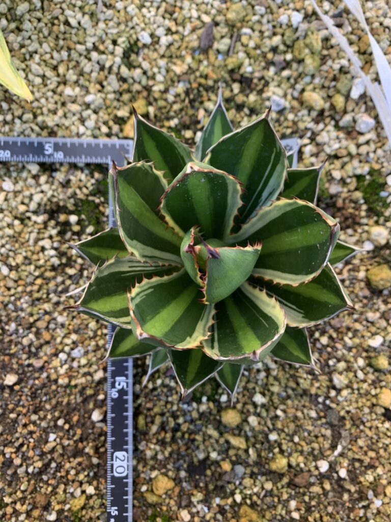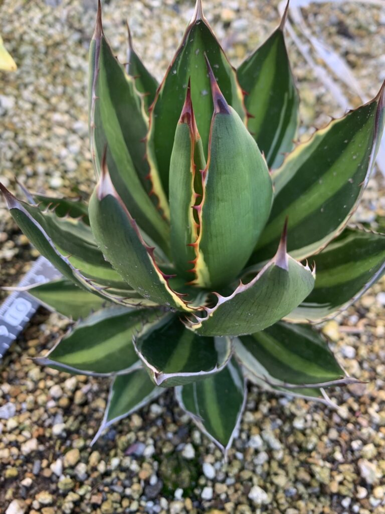 2025.09.14 アガベ PR アガベ ユニビッタータ ホワイト G-Jumper 記事内に商品プロモーションを含む場合があります Google アガベ ユニビッタータ ホワイトAgave Univittata White 特徴と購入経緯 師匠から頂いたユニビッタータ ホワイトです。学名は、ユニビッタータ、もしくはロファンサになり、そのエッジが白なので「ユニビッタータ ホワイト」という品種となります。この学名で有名なのは、五色万代です。 地植え成長記録 25年9月1年5か月後 24年4月にカット苗を頂きました。当時の写真はありませんが、直ぐに発根してくれて、その後も何の問題もなく育っています。綺麗で安くて、良い品種です。 購入時の写真がないので、上と横からの画像を掲載します。幅16cm 高さ16cm 葉幅3cm にほんブログ村 アガベ一覧に戻る HOMEに戻る Xからの読者コメントをお待ちしています。ブログ更新の励みになります! Xでコメントする Google
