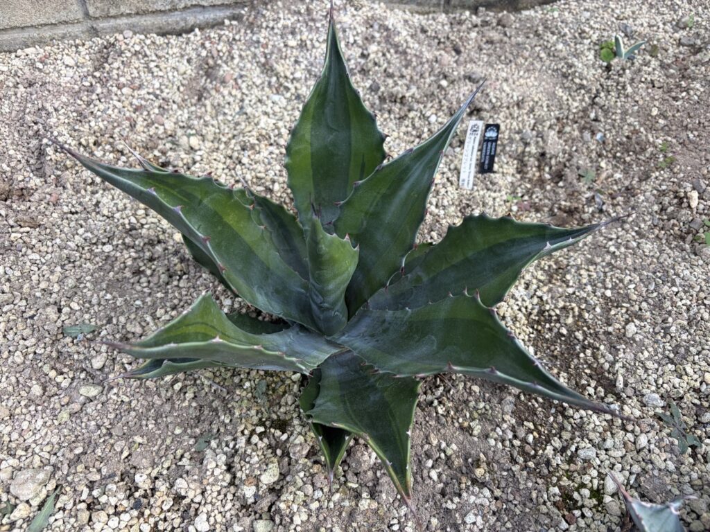 2025.07.17 2025.11.23 アガベ PR アガベ グリーンゴブレット 覆輪斑 G-Jumper 記事内に商品プロモーションを含む場合があります Google アガベ サルミアナフェロックス グリーンゴブレット 覆輪斑Agave Salmiana var. ferox “Green Goblet” 特徴と購入経緯 覆輪のグリーンゴブレットも欲しくなり、カトーエンゲーさんのヤフオクで落札した株です。覆輪刷毛斑と覆輪斑、どちらがお好みですか? 地植え成長記録 成長記録 24年8月 記録なし25年4月 記録なし25年7月 記録なし25年11月 幅31cm 高さ21cm 葉幅7cm 24年8月購入時 こちらは覆輪がハッキリしています。 25年4月8か月経過 順調に大きくなっています。 25年7月11か月経過 きれいな覆輪なのですが、やっぱり虫にやられています。グリーンゴブレットは虫にやられ易いのでしょうか?殺ダニ剤のローテンションで様子見です。 25年11月1年3か月経過 なんか、大きくなっていくに連れて、カッコ良くなって来たような。 うん、横から見ても良い感じ。幅31cm 高さ21cm 葉幅7cm にほんブログ村 この記事にご興味を持っていただいたら 地植え出来るアガベの品種毎の成長記録は、コチラから 是非!! アガベの育成のポイントは、コチラから 是非!! 別のカテゴリもご興味があれば見て下さい。 <アガベ・ユッカ> 群馬の平地でズボラ管理している成長記録です。<投資・ブログ収益> ズボラな私が始めた投資とブログの記録です。<家メンテ・修理> 家のメンテナンスや家電等の修理の記録です。<DIY・家庭菜園> DIYで作った物の紹介やズボラ管理の家庭菜園テキストをクリック!! HOMEに戻る Xからの読者コメントをお待ちしています。ブログ更新の励みになります! Xでコメントする #アガベ#グリーンゴブレット#フェロックス#成長記録#斑入り#覆輪 Google