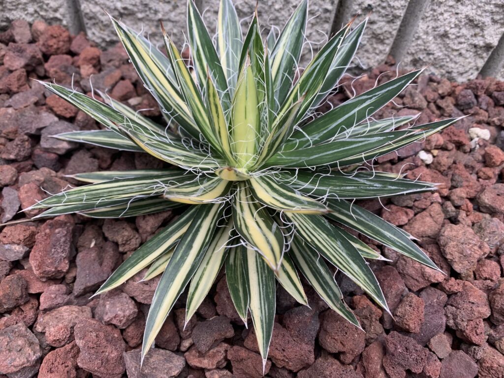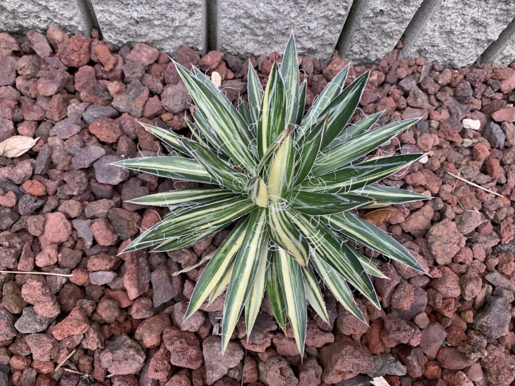 2025.11.02 アガベ PR アガベ フェリフィラ縞斑 G-Jumper 記事内に商品プロモーションを含む場合があります Google アガベ フェリフィラ縞斑Agave filifera ‘Striata Variegata’ 特徴と購入経緯 狭いドライガーデンエリアに植えていたサボテンの金鯱が越冬できず、1つやられてしまったので、耐寒性の強いフェリフィラの縞斑に入れ替えました。シンメトリーに配置しているので、2つ購入させて頂きましたので、キレイな方を記録していきます。購入は、師匠からです。 成長記録 25年5月 師匠から購入25年7月 記録なし25年11月 師匠から購入 幅21cm 高さ10.5cm 葉幅2cm 地植え成長記録 25年5月購入時 資料のインスタで見て、サボテンの代わりにピッタリと思い購入しました。細い葉に斑がいっぱいでカッコいいですよね。 25年7月2カ月経過 活着して、葉も展開してきました。トラブルも起こさず、良い子です。 25年11月6カ月経過 右側の斑が少ない感じがハーフムーンの様に見える。今後どうなっていく経過を見守りたい 幅21cm 高さ10.5cm 葉幅2cm にほんブログ村 この記事にご興味を持っていただいたら 地植え出来るアガベの品種毎の成長記録は、コチラから 是非!! アガベの育成のポイントは、コチラから 是非!! 別のカテゴリもご興味があれば見て下さい。 <アガベ・ユッカ> 群馬の平地でズボラ管理している成長記録です。<投資・ブログ収益> ズボラな私が始めた投資とブログの記録です。<家メンテ・修理> 家のメンテナンスや家電等の修理の記録です。<DIY・家庭菜園> DIYで作った物の紹介やズボラ管理の家庭菜園テキストをクリック!! HOMEに戻る Xからの読者コメントをお待ちしています。ブログ更新の励みになります! Xでコメントする Google