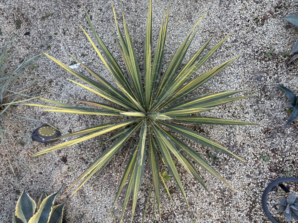 2025.08.13 2025.11.23 ユッカ PR ユッカ フラシーダ 縞斑 G-Jumper 記事内に商品プロモーションを含む場合があります Google ユッカ フラシーダ 縞斑Yucca Flaccida striped 特徴と購入経緯 今年(25年)は、アガベでなくてユッカのマイブームが来ています。世の中はサボテンブームらしいですが、イマイチ興味が湧きません。耐寒性があるのが少ないからな?師匠にユッカのオススメを聞いた所、紹介して貰ったのがこのフラシーダの縞斑。ググってもあまり出てこないので、珍しい物なのでしょうね。師匠曰く、耐寒性はあるらしいので、人身御供として群馬の平野でノーガードでテストしてみたいと思います。 地植え成長記録 成長記録 25年5月 記録なし25年8月 記録なし25年11月 横80cm 高さ48cm 葉幅2.8 幹幅4.5cm 25年5月購入時 なるべく根は触らずに、不織布の鉢に植え替えて、地球にINしました。やっと太めの葉が出て来て、これから成長するかなって感じですね。 25年8月3か月経過 3か月で一気に大きくなりました。今後、どんな姿になるんだろう。 25年11月6か月経過 かなりの成長速度です。幹立ちは、しないみたい。横80cm 高さ48cm 葉幅2.8幹幅4.5cm にほんブログ村 この記事にご興味を持っていただいたら 他のユッカの成長記録は、コチラから 是非!! 別のカテゴリもご興味があれば見て下さい。 <アガベ・ユッカ> 群馬の平地でズボラ管理している成長記録です。<投資・ブログ収益> ズボラな私が始めた投資とブログの記録です。<家メンテ・修理> 家のメンテナンスや家電等の修理の記録です。<DIY・家庭菜園> DIYで作った物の紹介やズボラ管理の家庭菜園テキストをクリック!! HOMEに戻る #フラシーダ#ユッカ#地植え#成長記録#斑入り Google