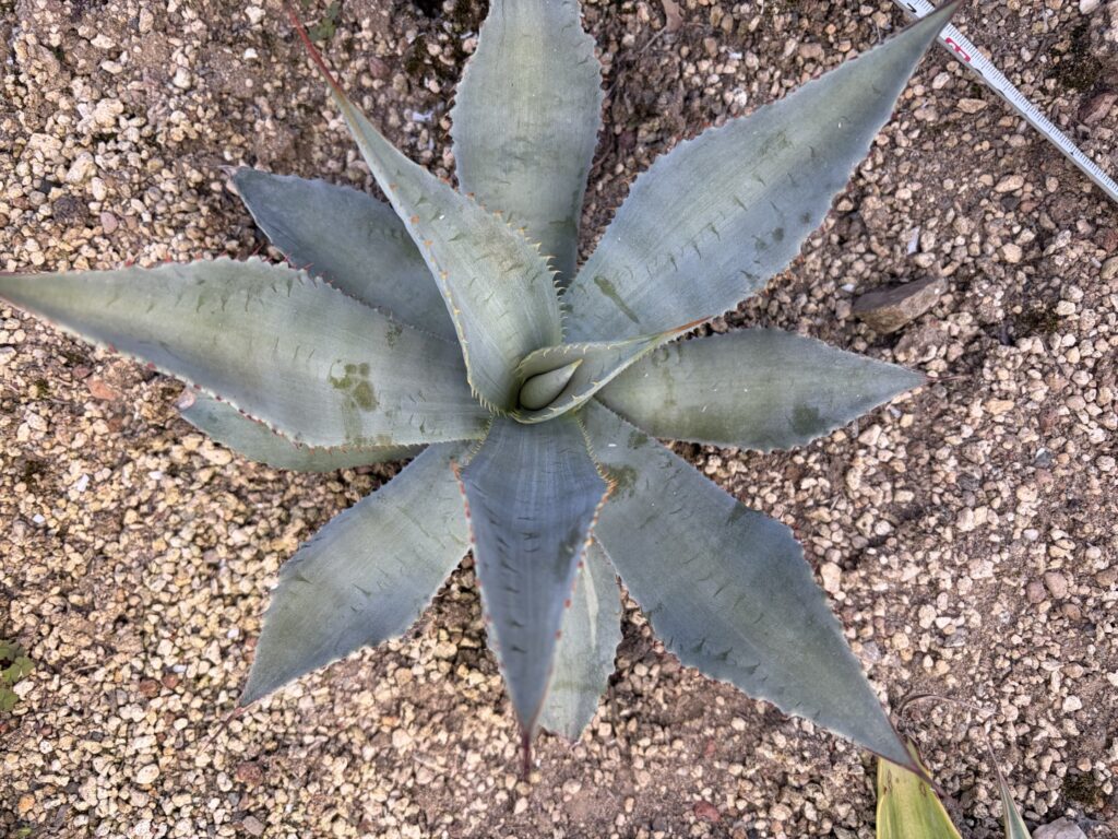 2025.07.17 2025.11.23 アガベ PR アガベ フェロックス 白白斑? G-Jumper 記事内に商品プロモーションを含む場合があります Google アガベ サルミアナフェロックス 白白斑?(オリジナル)Agave salmiana var.ferox white 特徴と購入経緯 アガベを始めた時に、アガベって高いなって思っていて、実生をやってみる事にしました。当時、コバ・アミーゴさんが種友の会というのをやっていて、10種類×100粒から出てきた株になります。実生をやってみた感想は、素人はやらない方が良いと思います。実生の株はあまり人気がないので売れないし、たくさんの株を持て余す事になります。達人に聞いても、選抜以外は畑に返すとの事で、捨てるのに抵抗のある私には向きませんでした。この株も捨てる手前でした。 地植え成長記録 成長記録 25年7月 記録なし25年11月 幅29cm 高さ20cm 葉幅5cm 25年7月地植え時 プラステラ鉢にギュウギュウに詰まっていて、捨てようとした実生株です。捨てる時に斑が入ってる事に気づき、地植えしてみると白くて、白い斑も確認出来て綺麗な株になりそうな予感。白く見える部分が地植えした以降に出てきた葉です。 25年11月地植え時 白い鮮明な斑は、1枚だけしか出ませんでした。残念。子株に期待かな? 幅29cm 高さ20cm 葉幅5cm にほんブログ村 この記事にご興味を持っていただいたら 地植え出来るアガベの品種毎の成長記録は、コチラから 是非!! アガベの育成のポイントは、コチラから 是非!! 別のカテゴリもご興味があれば見て下さい。 <アガベ・ユッカ> 群馬の平地でズボラ管理している成長記録です。<投資・ブログ収益> ズボラな私が始めた投資とブログの記録です。<家メンテ・修理> 家のメンテナンスや家電等の修理の記録です。<DIY・家庭菜園> DIYで作った物の紹介やズボラ管理の家庭菜園テキストをクリック!! HOMEに戻る Xからの読者コメントをお待ちしています。ブログ更新の励みになります! Xでコメントする #アガベ#フェロックス#地植え#成長記録#斑入り#白斑 Google