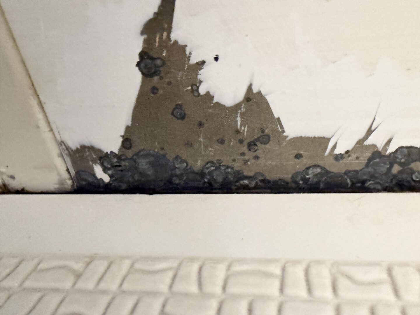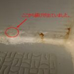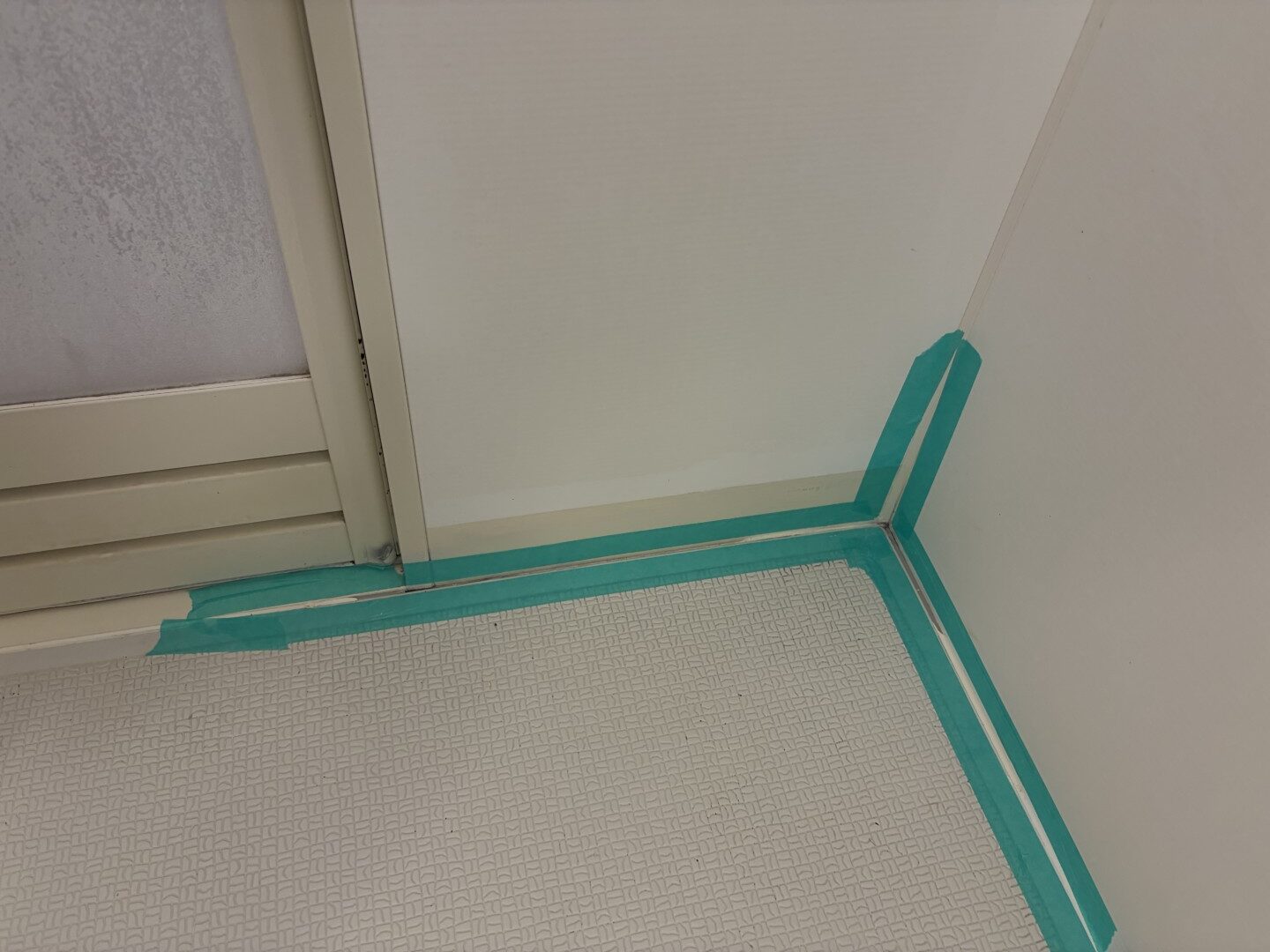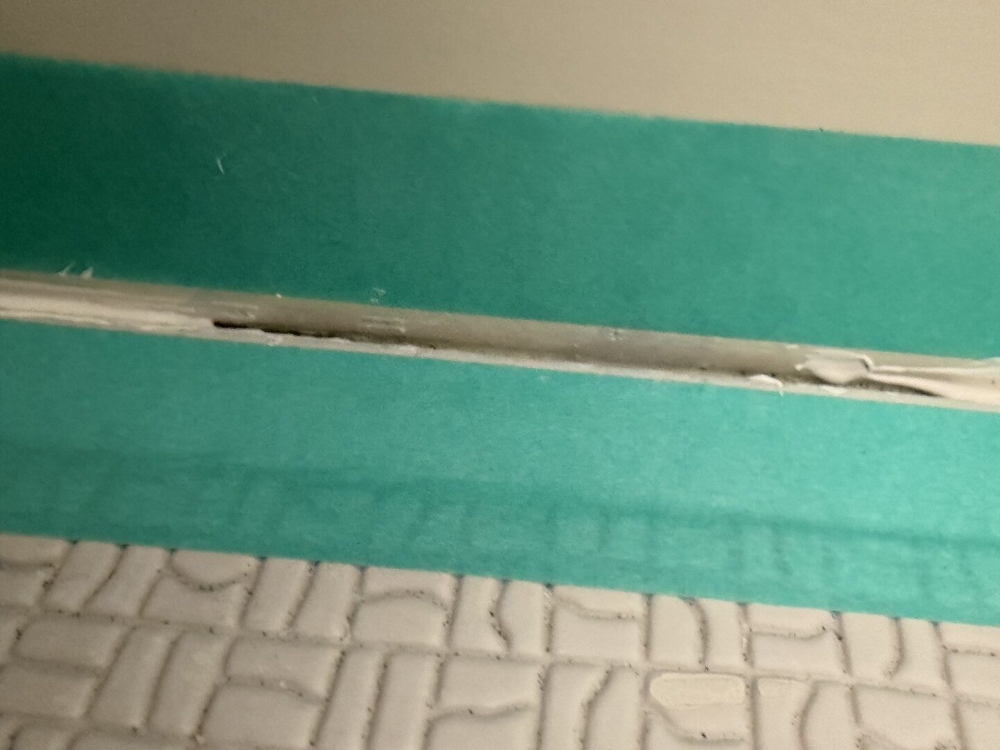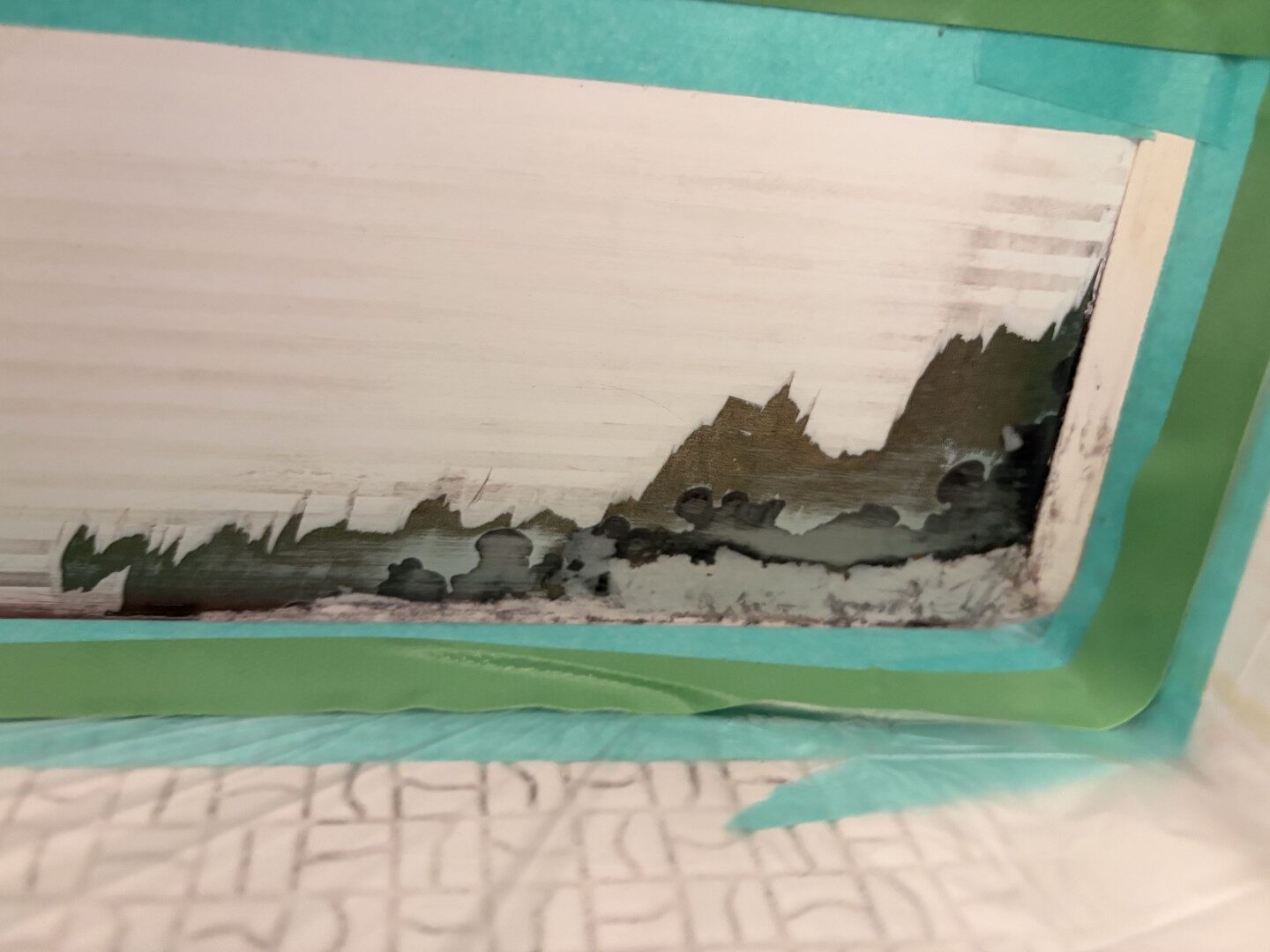 下の細い溝。グレーのシーリングがされていましたが、塗装と一緒に剥がした時に濡れていました。