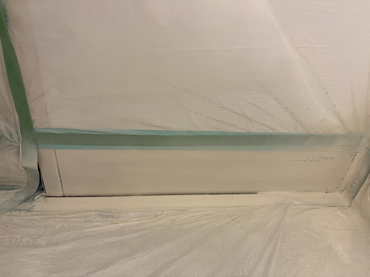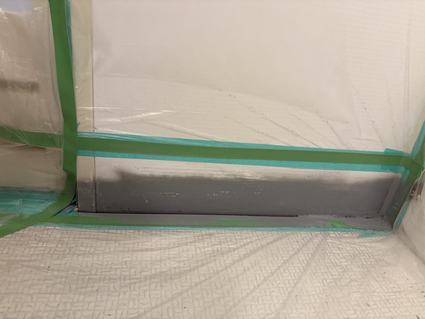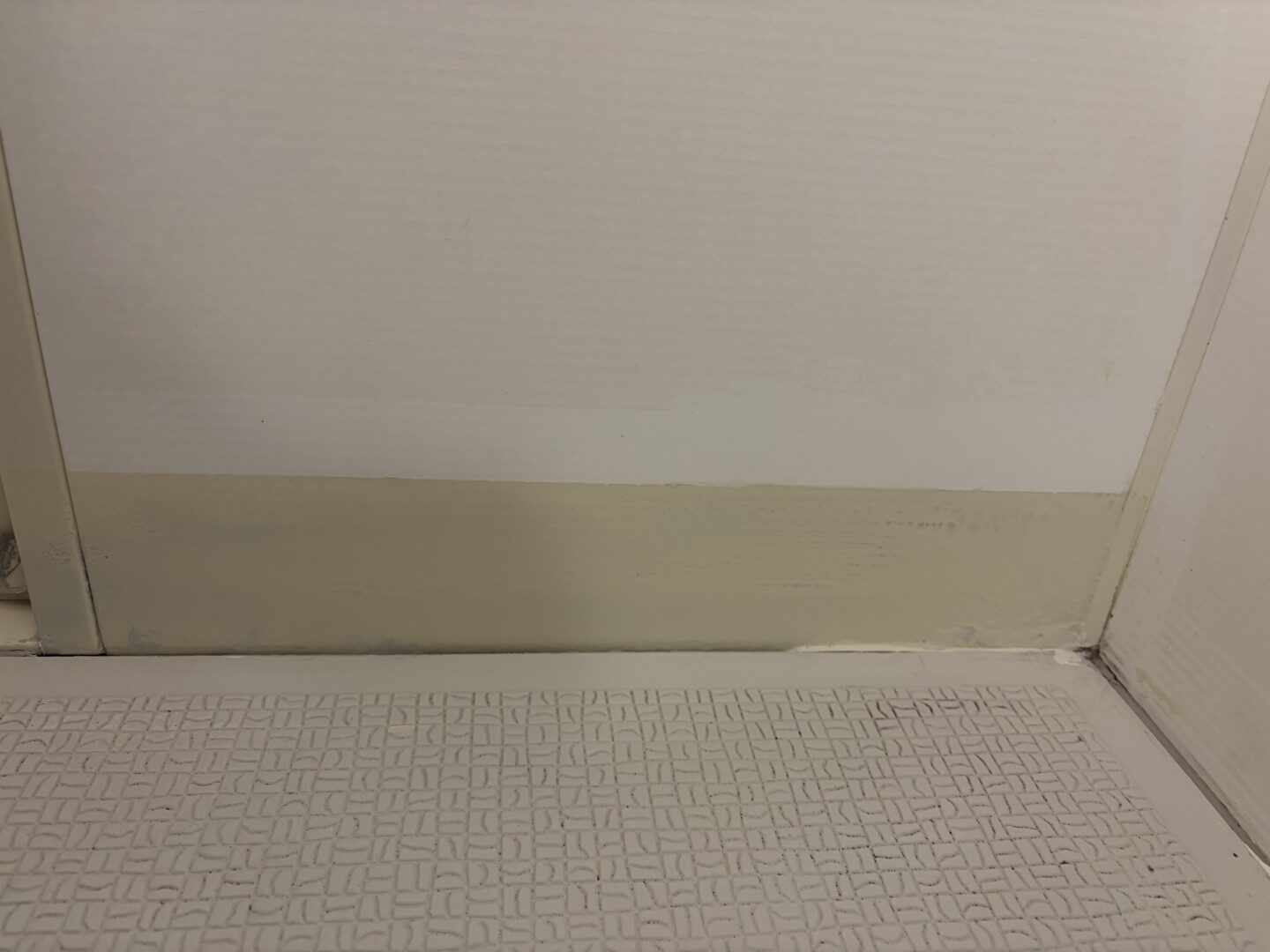 下の細い溝。グレーのシーリングがされていましたが、塗装と一緒に剥がした時に濡れていました。