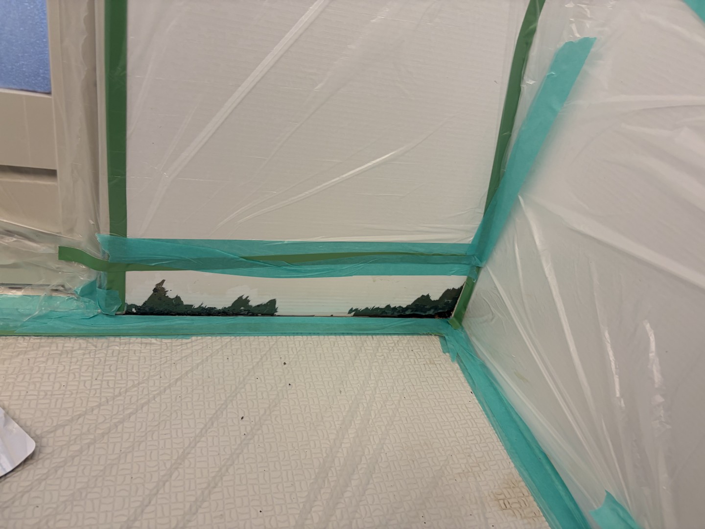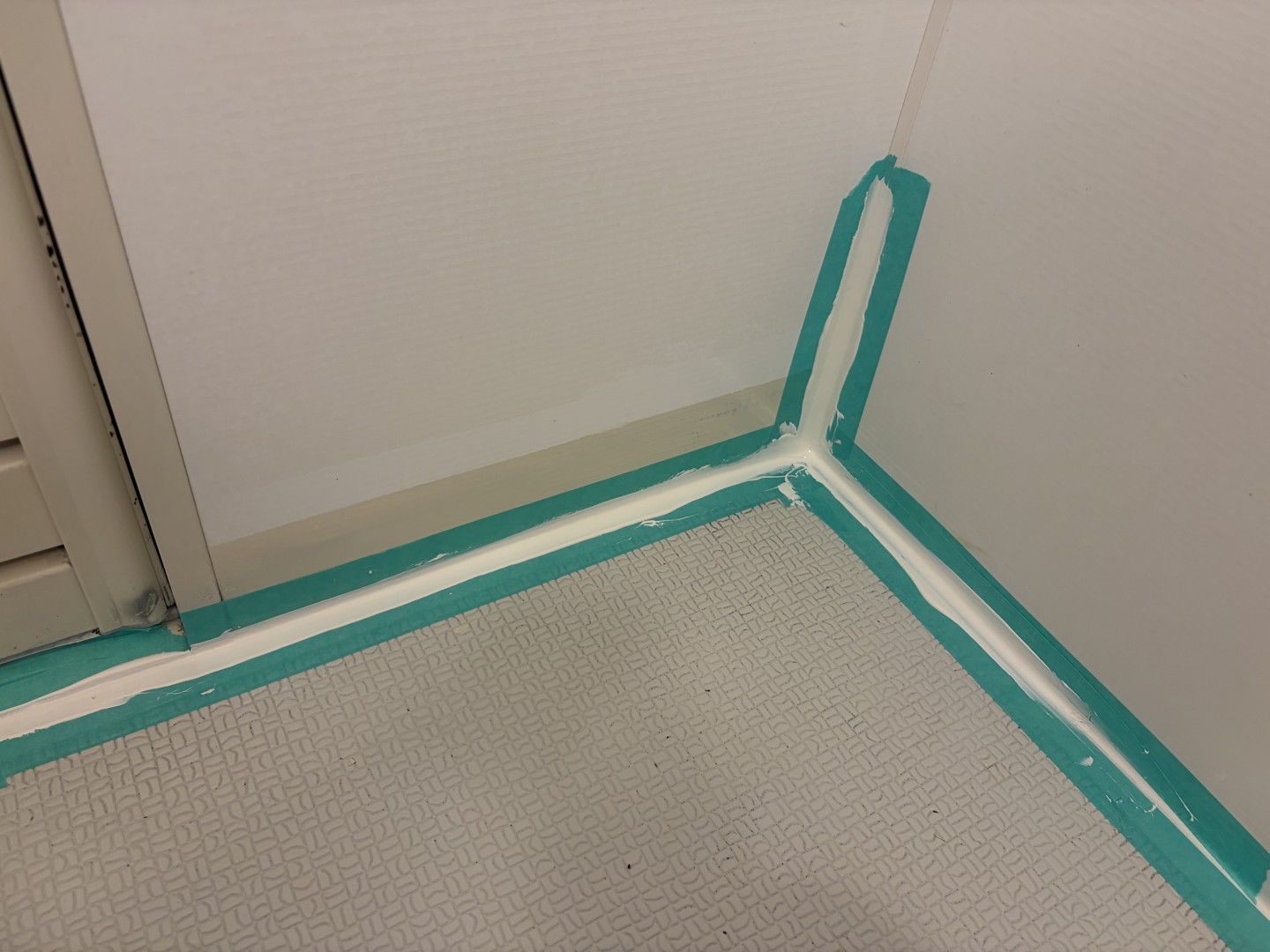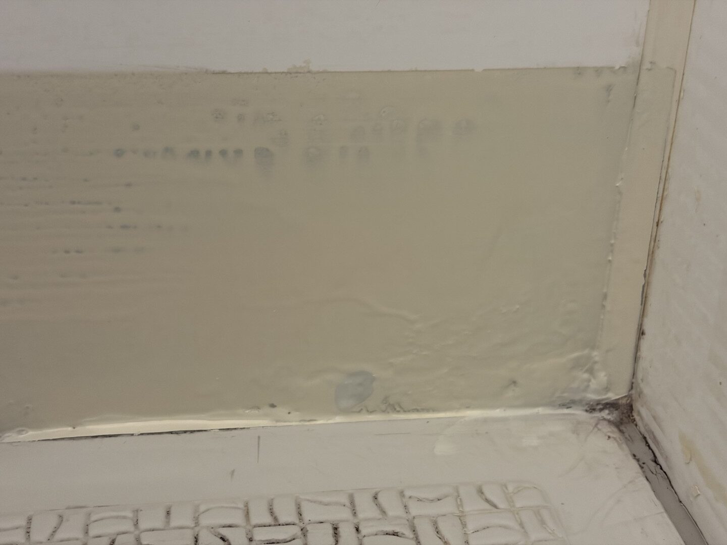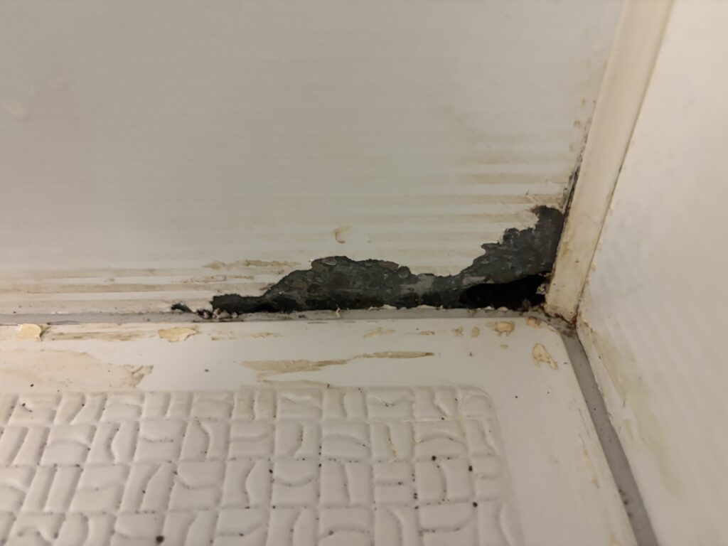 下の細い溝。グレーのシーリングがされていましたが、塗装と一緒に剥がした時に濡れていました。