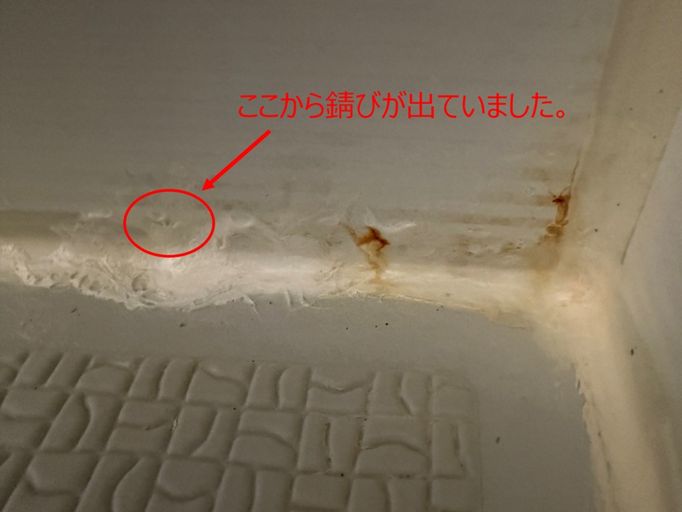 皆さんに気を付けて頂きたいのは、ユニットバスの壁にサビを見つけたら、良く見て下さい。貰いサビでなかったら、すぐに塗装を剥いでください。放置すると穴開きます。本当に気を付けて下さい。