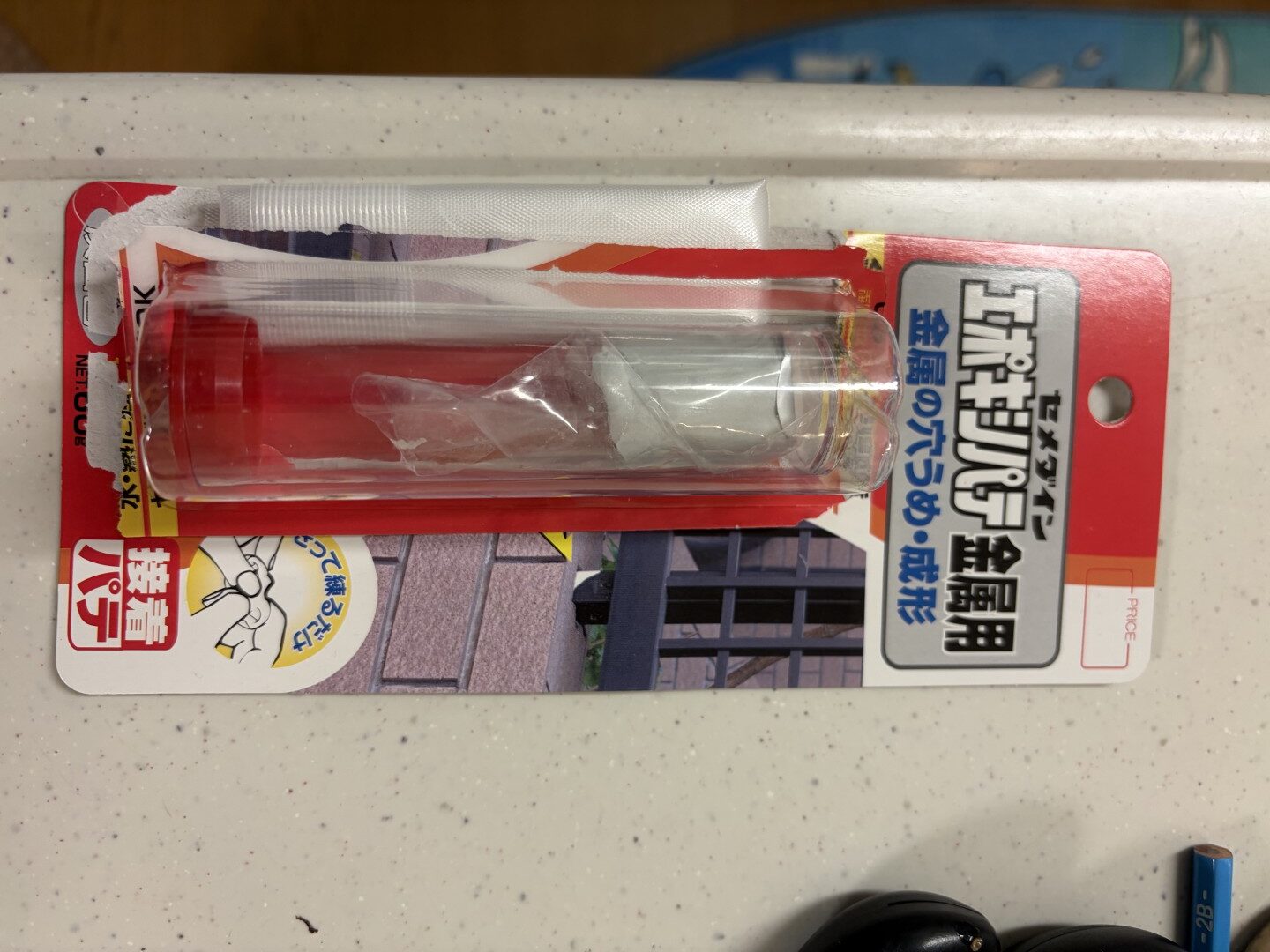 乾いたら金属用のエポキシパテで穴を塞いでいきます。