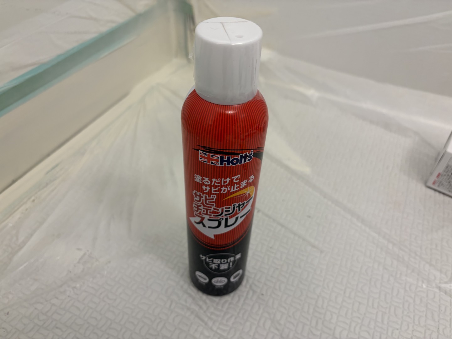 サビびは、どんどん進行してしまうので、サビ転換材が必要です。しかもこの壁の穴の中に掛けたいので、スプレータイプの展開剤を見つけるのに苦労しました。