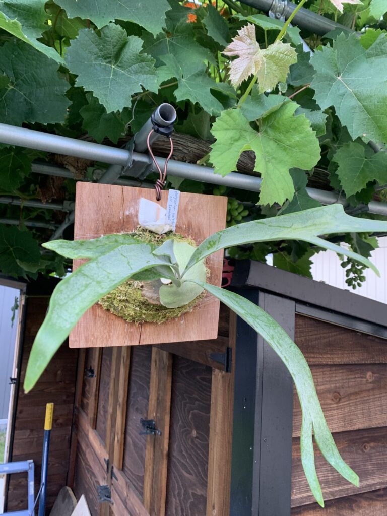 お外でも大丈夫らしいので、ぶどう棚に引っ掛けておきました。