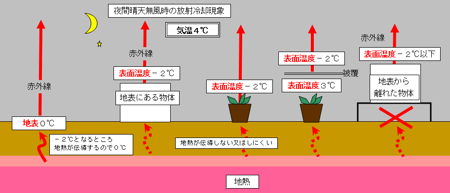 冬越しと言えばビニールハウスですが、簡易的なビニールハウスは、放射冷却により外気温より、下がる事があるそうです。ビックリ!!